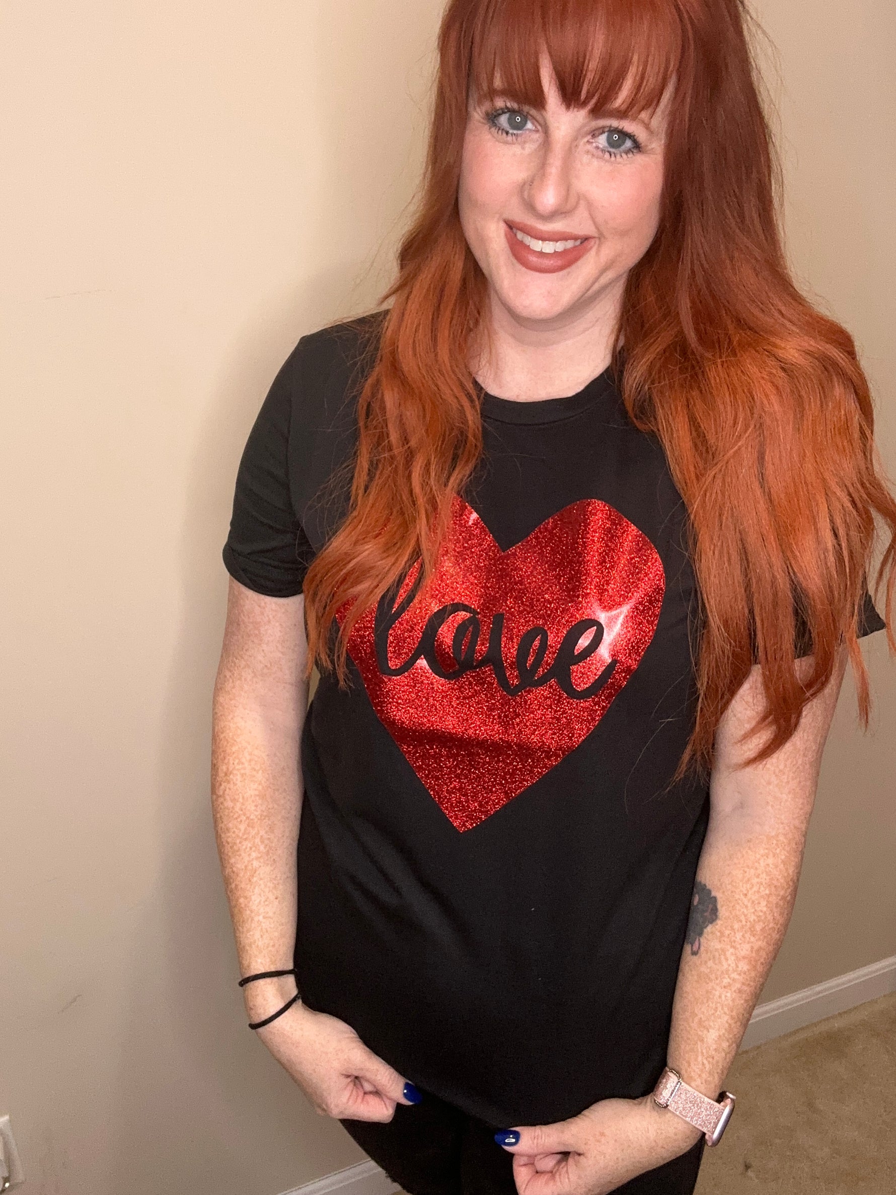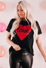 Black Love Heart Shaped Glitter Print T shirt