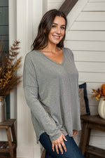 Unleash your playfulness with our My Everyday Olive Long Sleeve shirt! Designed with a relaxed fit and heathered olive color, this shirt offers both comfort and style. Featuring a v-neck, long sleeves, and dolphin hem, it's the perfect blend of quirk and fun. Don't miss the unique reverse stitch detail for an added touch of charm. Upgrade your everyday wardrobe with this must-have!