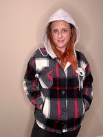 Stay cozy in these warm plaid button-ups. Stylish and soft, they even have a built in hood!