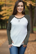 Keep your style on time with our Look At The Time Thumbhole Raglan! The raglan long sleeves and round neck offer a comfortable fit, while the reverse stitch detail and mini waffle knit add unique style. Complete with a dolphin hem, this top is a must-have for any fashion-forward individual.
