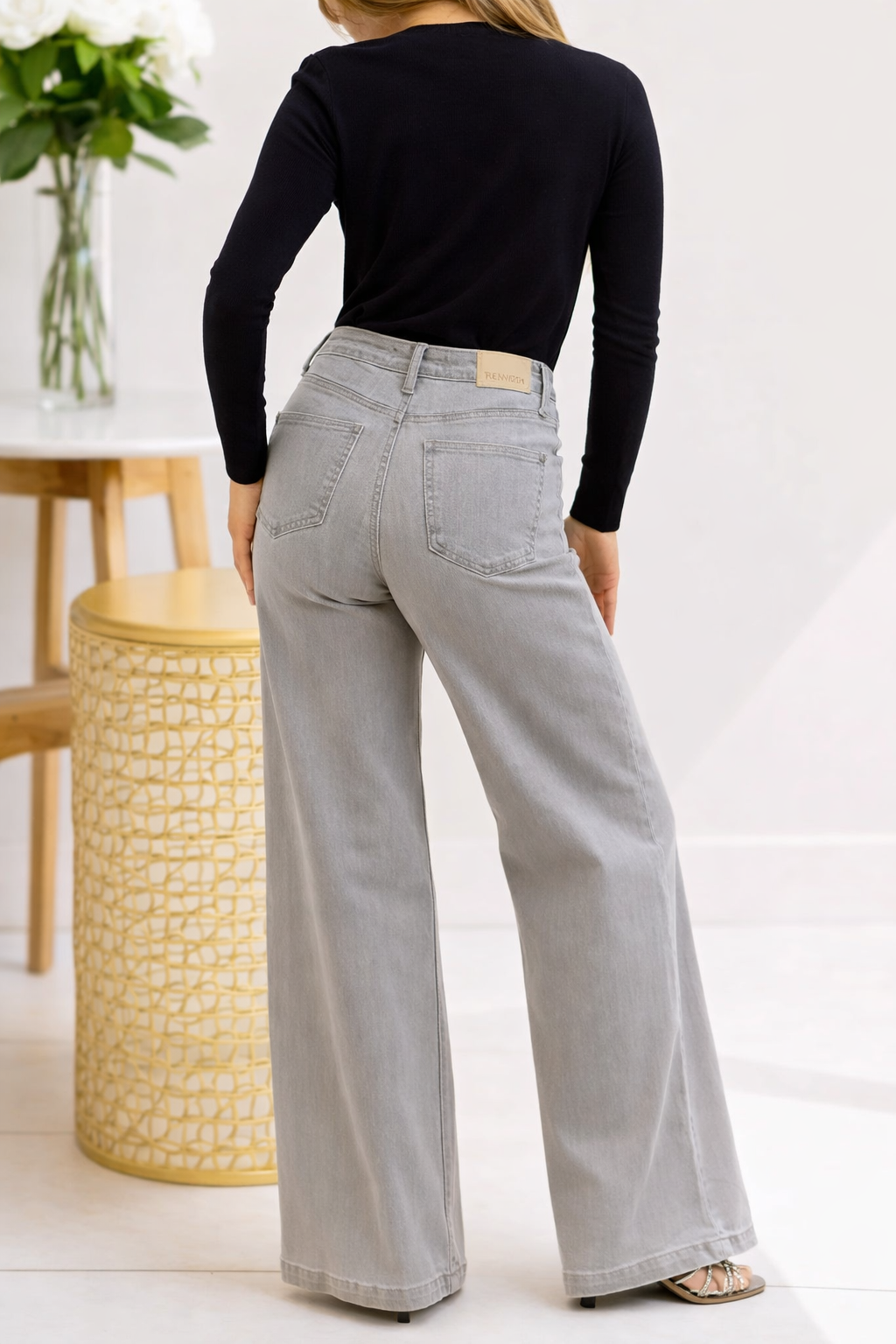 Step into retro vibes with these Judy Blue grey wide-leg jeans that scream vintage cool. The high-rise cut flatters your silhouette while the roomy legs give you that effortless, '70s-inspired look everyone's obsessing over. Soft denim that moves with you, timeless grey wash that pairs with everything—your new go-to for looking put-together without trying too hard. Because sometimes the best style is the one that feels like a hug.