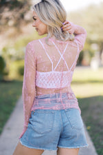 Wrap yourself in our Pink Lace Embrace Top made of soft, lightweight lace mesh fabric. Its high neck design and slim fit will keep you stylish and comfortable. Perfect for any occasion, this top comes with long sleeves and doesn't include a lining (bralette not included). Get ready to embrace the lace!!