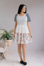 Meet your new go-to dress! The Overcast Petal Babydoll combines whimsical charm with everyday wearability. Playful polka dots dance across floral blooms while striped accents add a pop of contrast. The relaxed babydoll fit and tiered skirt create a breezy, carefree vibe that's perfect for everything from brunch dates to weekend strolls. Soft, flowy, and endlessly fun—this dress is ready for whatever adventure comes your way!