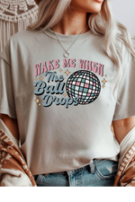 Celebrate New Year's Eve with a wink in the When The Ball Drops T-Shirt. Featuring the playful phrase "Wake Me When the Ball Drops," this comfy tee is perfect for those who love to party but also cherish their beauty sleep. Soft, fun, and full of attitude, it’s your perfect go-to for a laid-back countdown!