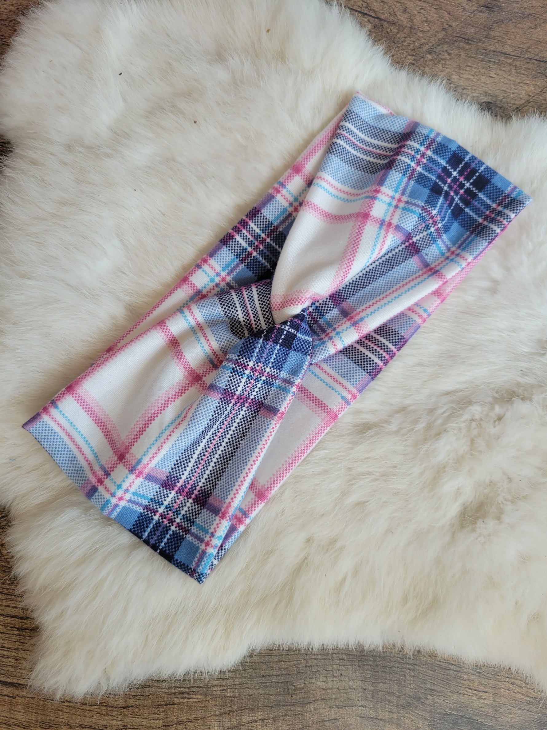 Blue and Pink Plaid Headband