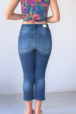 Get ready for some serious edge with the Mystic Edge Capris by Judy Blue! These capris feature a dark wash and a unique side slit design, adding a touch of mystique to your everyday style. With a stretchy fit, you can rock these capris comfortably all day long. Level up your wardrobe with a playful twist.