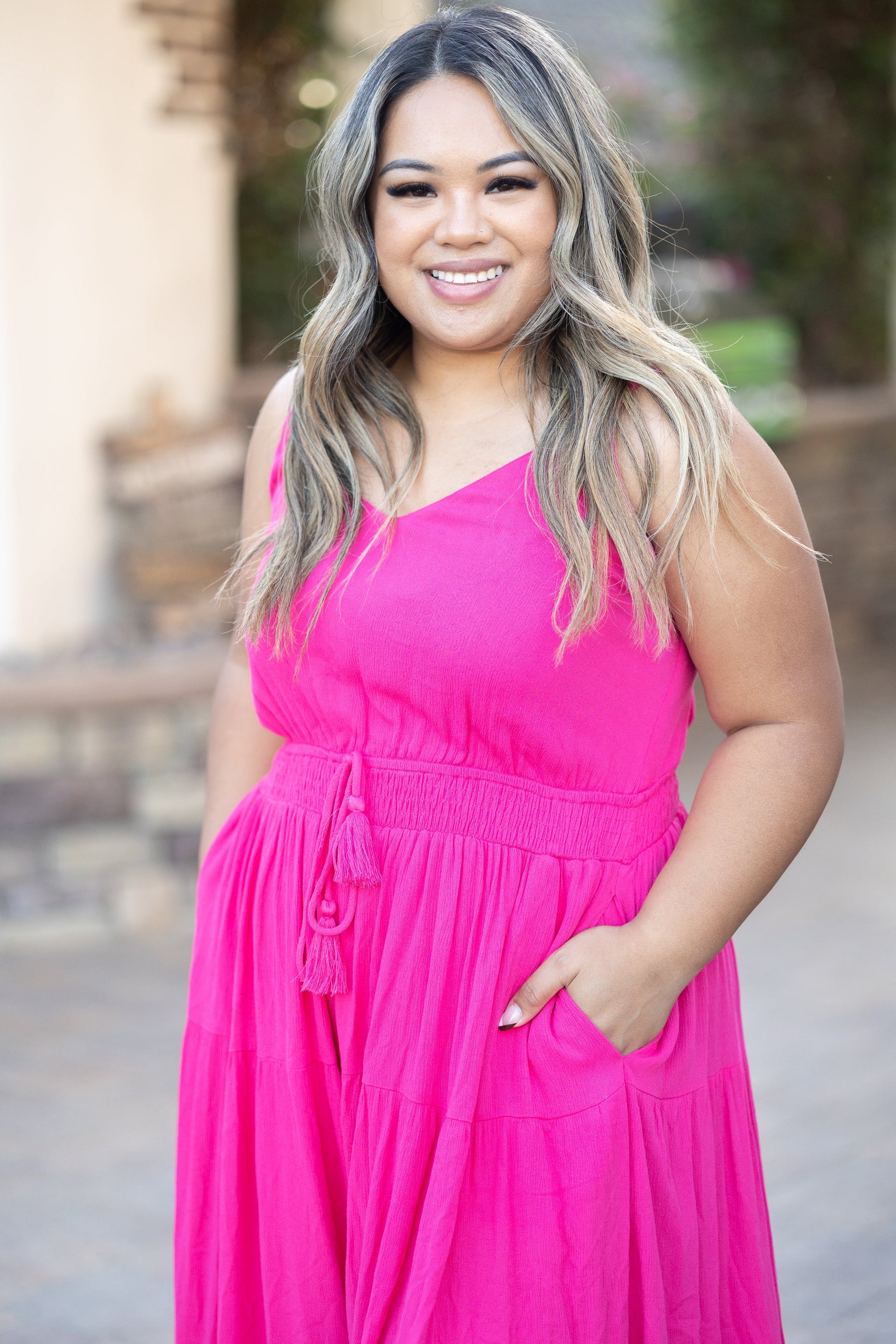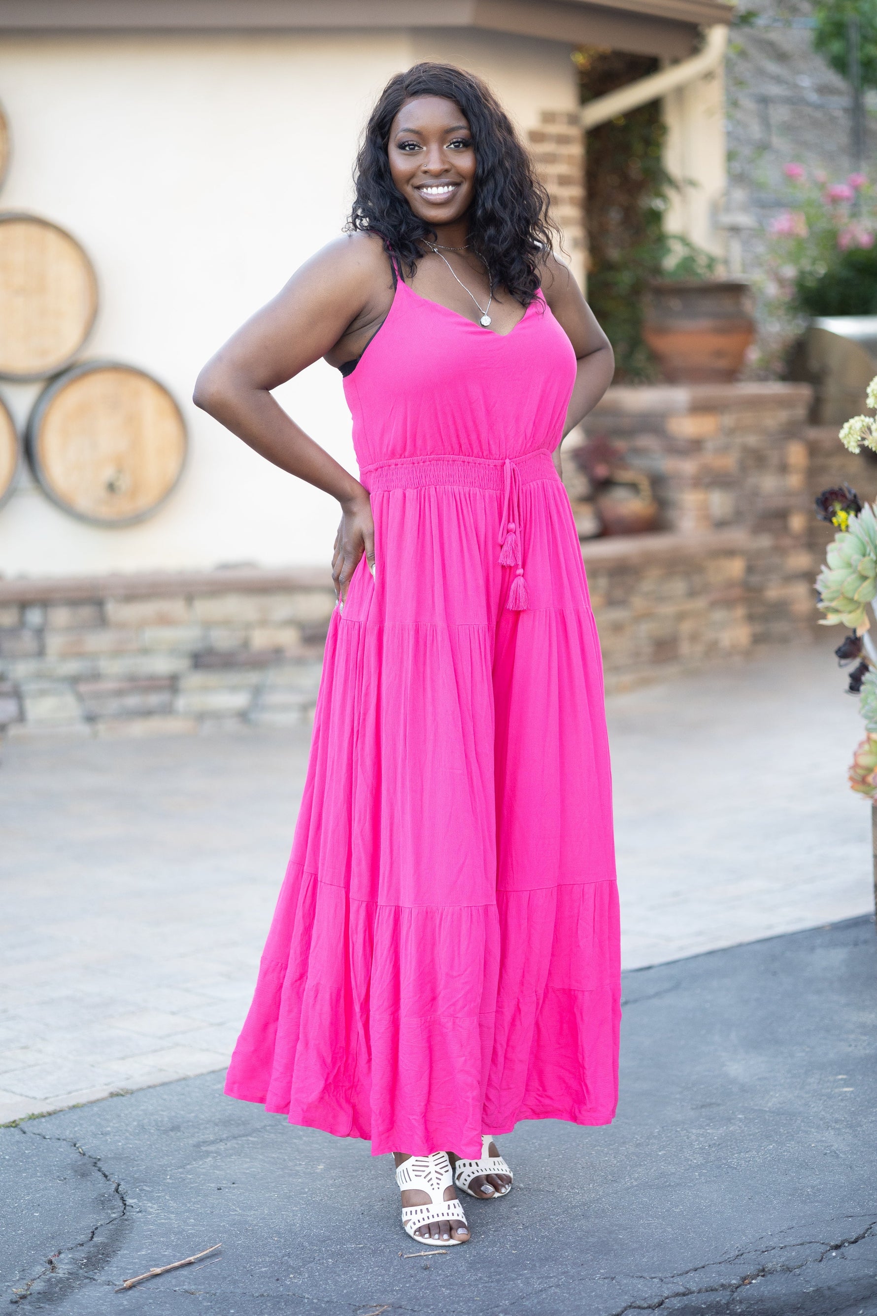 OMG! This jumper looks like you are wearing an upscale maxi...but in reality its a comfortable jumpsuit! OBSESSED! The smocked waistline makes this piece perfect for all body types and that open back tie is to die for. Adjustable straps??! Why yes! AND POCKETS.