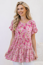 Meet the Petalfall Ruffle Top—a delightfully feminine knit with all the playful details you love. The round neckline, ruffled accents, and tiered peplum create movement and charm, while relaxed dolman sleeves keep things comfy. Vibrant florals bring that fresh, garden-inspired vibe to any look, whether you're keeping it casual or dressing it up.