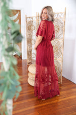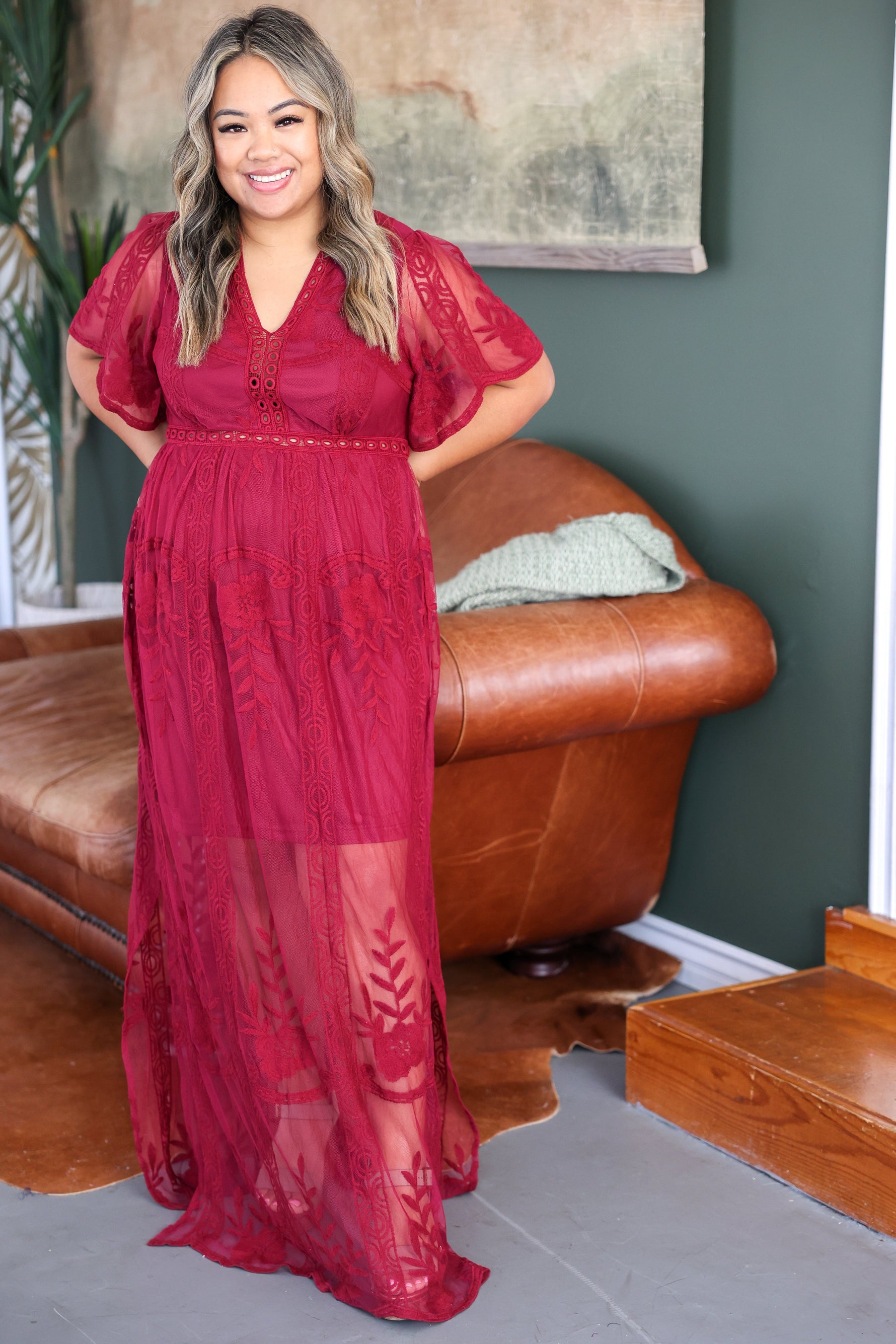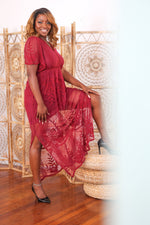 Slip into elegance with this stunning lace layered wine dress. Featuring a V-neck, short sleeves and a lace overlay this dress will be great to dress up any occasion.