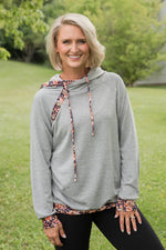 The floral accents on this gray hoodie are simply stunning! This long-sleeve pullover features a double hood with a charming contrast floral print, along with matching cuffs and drawstrings. Made from lightweight French terry knit, it's perfect for wearing on its own or layering over your favorite tee.