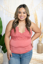 This marsala cami has the perfect added touch of crochet flowers, making it such a gorgeous and unique piece! With a fitted silhouette, this cami features a v-neck and adjustable straps.