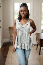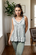 Cozy up in the True Feelings Babydoll, made from soft, lightweight knit. Designed with a v-neck and ruffle details, this dress features a flattering empire waist and playful ruffle trim. Embrace comfort and style with this sleeveless piece.