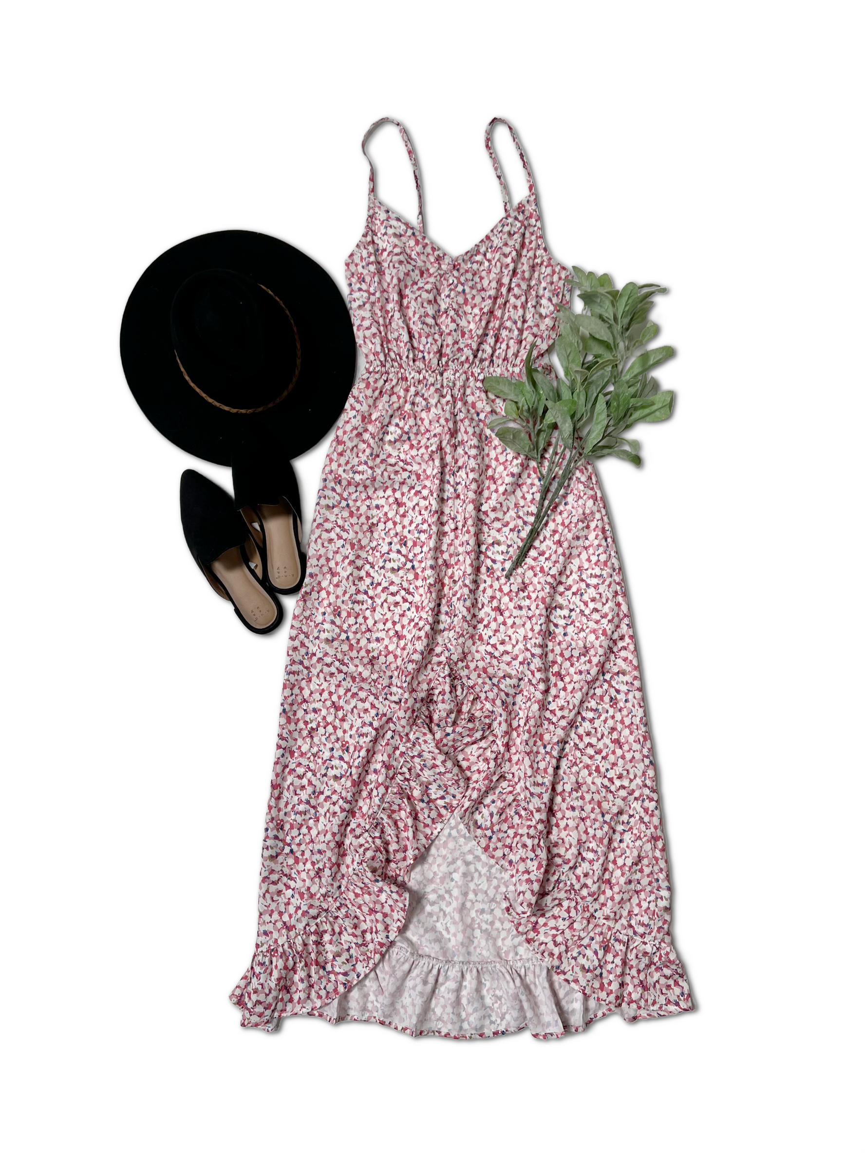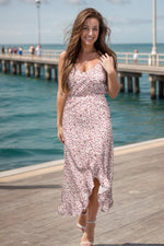 Be a trendsetter in our Leading the Way - Maxi. This lightweight, v-neck dress features a beautiful tulip hem, faux button detail, and ruffle trim. The elastic waist and adjustable straps ensure maximum comfort without sacrificing style. Stay ahead of the fashion game with this quirky and playful piece.
