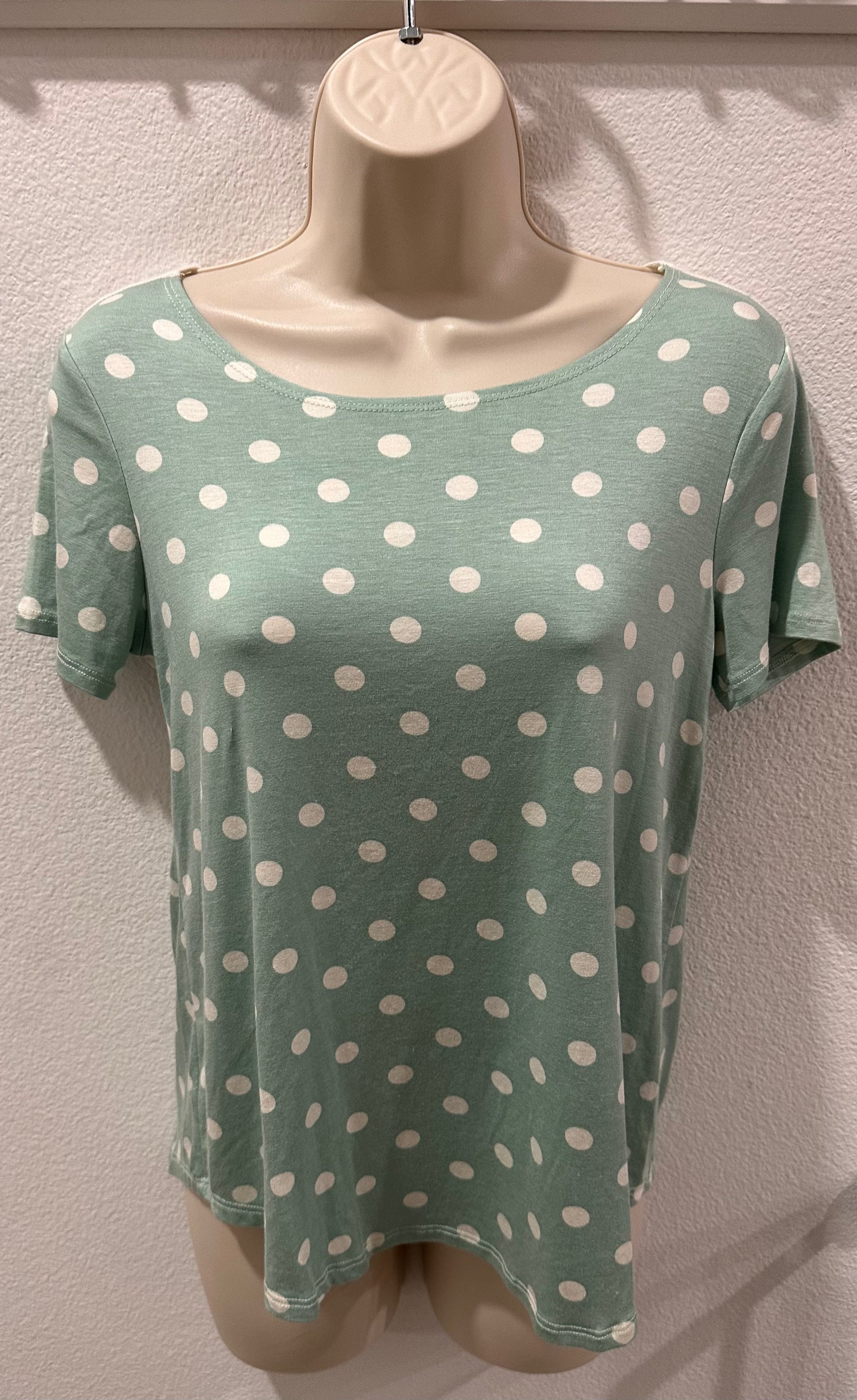 Stand out in the crowd with this adorable Mint polka dot top with tie back! super soft comfy material.