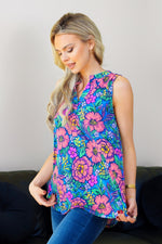 Introducing our Petal Splash Tank, the perfect addition to your summer wardrobe. With its a-line bodice, split neckline, and mandarin collar, this colorful tank will keep you cool and stylish. Boasting an easy, flowy, and relaxed fit, as well as non-sheer, stretchy, and wrinkle-free fabric, this tank is both practical and fashionable. Don't miss out on this must-have for the warmer season!