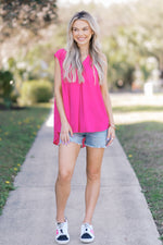 Look stylishly chic in this Pink Petals high-low blouse! This comfy woven number flaunts a flirtatious v-neck, ruffled detail, and relaxed fit so you can rock it day or night. Get ready to make heads turn with every "high" and "low" style move!