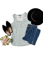 Introducing our Serenely Beautiful Sleeveless Top! With a scoop neck and dolphin hem, this top is perfect for any casual occasion. The button detail adds a touch of elegance, while the dainty floral print gives a feminine and delicate touch. Stay stylish and comfortable with this versatile top.