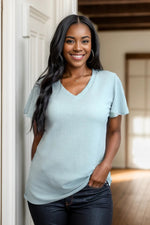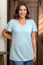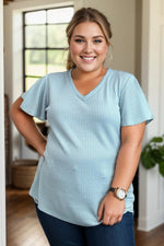 Reach new heights of style with our Sky's The Limit Short Sleeve shirt! Made with a mini waffle knit and featuring a v-neck, short bell sleeves, and a relaxed fit, this shirt is perfect for any adventure. The rounded hem adds a touch of casual charm to this must-have top.