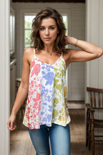 Unleash your soul's desire with our floral print tank! Its adjustable spaghetti straps and relaxed fit offer a comfortable and customizable fit, while the v-neck adds a touch of style. Perfect for adding a pop of color to your wardrobe. (No more boring tanks for you!)