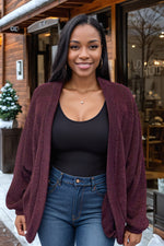 Experience the utmost in comfort and style with this cozy Senses Of Cabernet Knit Cardigan! Gently knitted with an open face and oversized fit, this cardi is perfect for that effortless laid-back look. Plus, its long balloon sleeves will keep you warm and comfy all day long. Y'know, just in case you plan to be drinking your favorite vino for hours on end. ;)
