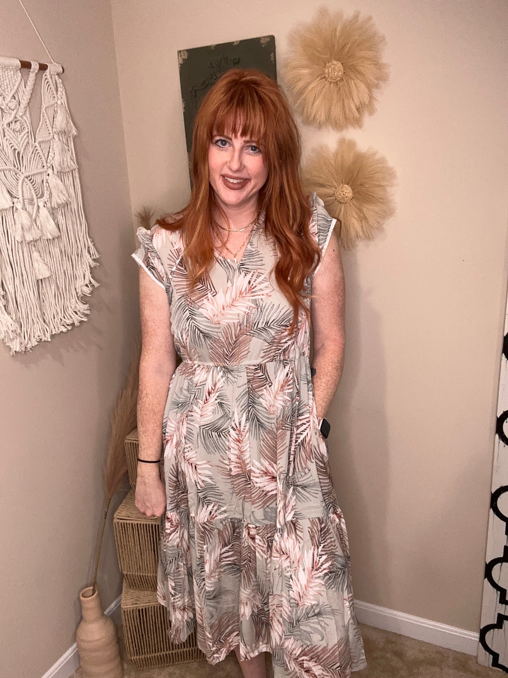 Feel like you're in paradise with our Palms & Paradise Dress! This tropical printed tiered maxi dress will transport you to a world of palm trees and ocean breeze. Stay cool, comfortable, and stylish all day long. Aloha, summer vibes!